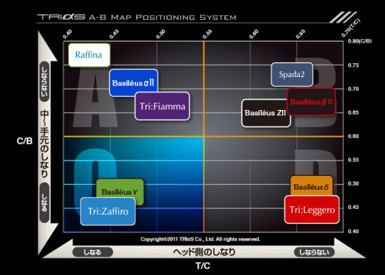 | Shaft | Basileus Tri:Zaffiro 40, Basileus Tri:Zaffiro 50, Basileus Tri:Zaffiro 60 |