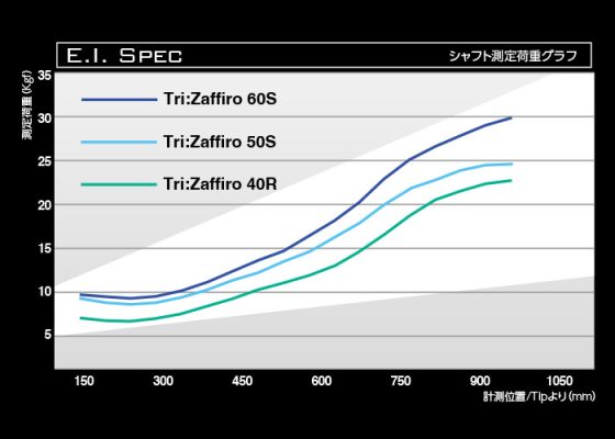 The “Tri:Zaffiro” is classified as a “C” on the AB Map. The smooth flex from the front of the hand to the tip is designed to maximize the flex throughout the entire length of the club for golfers who are hitting the impact point with the body tan. The basic concept is inherited from the previous Zaffiro series, but a new standard design using Pan 50t as the main material has achieved a balance between low torque and comfortable flex. In order to achieve a high trajectory and to catch the ball, the tip of the shaft is designed to have a T/C value of 0.54 (60/S), which makes it easier to feel the shaft’s behavior. The C/B value is also 0.53 (60/S), and the design of the flexing from the hand to the middle section makes it easier to create a tame ball from the turn. Tri:Zaffrio” is designed to have a flowing bend from the hand side to the middle and to the tip to launch the ball on a high trajectory with a body turn. It is an athlete shaft for technical swingers.
