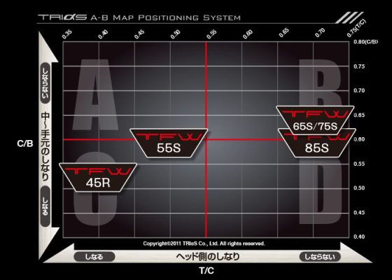 TFW (TFW), which uses the AB-MAP flow system, classifies the 45 series in the lightweight range as “C,” the 55 series in the medium-weight range as “A/C boundary type,” and the 65/75/85 series in the medium to heavy weight range as “B/D boundary type. This positioning system, which can be safely proposed to master target users in each weight range, expands the possibilities of brushing up FW as one’s own weapon. Furthermore, as a functional feature, the shaft cuttable range of the tip (Tip) is designed to a maximum of 2.5 inches to allow the craftsman maximum freedom of adjustment. For this reason, the total length of the uncut shaft is designed to be 45 inches, which is 1 inch longer than our normal standard. Variable functionality that can be easily matched with shafts from other companies, and a lineup that can be used to satisfy any itch, make this an item that can be selected with peace of mind.